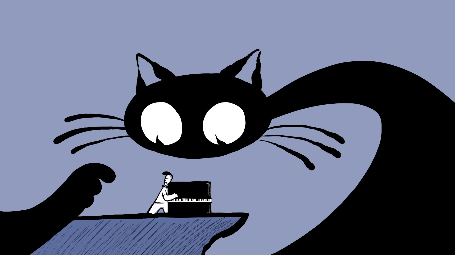 A musician is playing the piano on a cliff, a shape-shifting cat is interfering with him. The musician learns to play the world itself—discovering that real music comes from within.