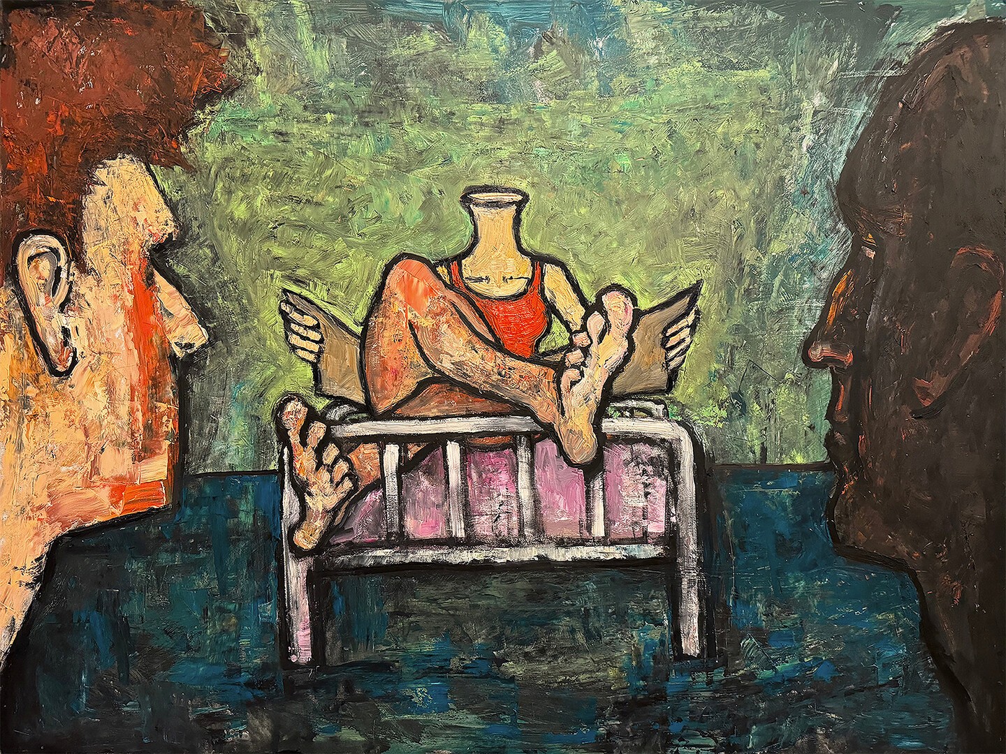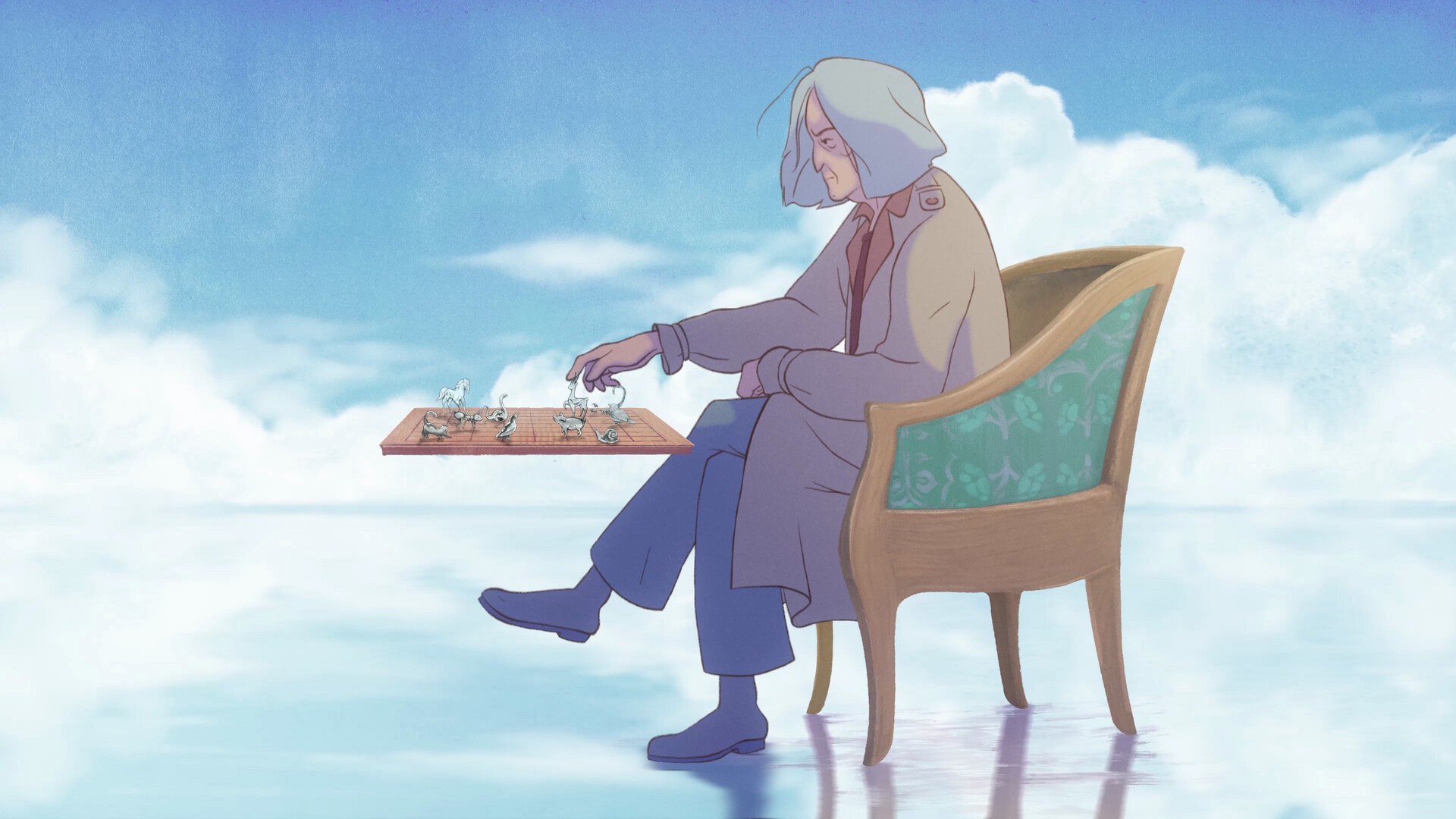 This is a story about creative and sensitive people. Their feelings get hurt (unrequited love, misunderstanding and loneliness) and they all end up in a metaphorical place (hospital ward) where they meet each other, talk and recover. The boy finds the girl he once felt in love with, the poet is now understood and admired and the girl is not lonely anymore. There is also a fourth character, he is a smoking silhouette, he has no feelings and he can only feel physical pain, it seems like he's living in a completely different world, he has no spirituality in him.